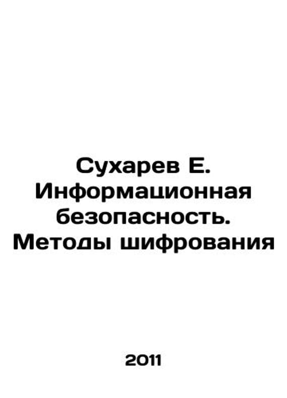 E. Sukharev Information Security. Encryption Methods In Russian /Sukharev E. Informatsionnaya bezopasnost. Metody shifrovaniya M. Radiotechnica 2011. A.Klepova. Library. Information Security of Russia. We have thousands of titles and often several copies of each title may be available. Please feel free to contact us for a detailed description of the copies available. SKUalb6388e1a83aeb32c6.