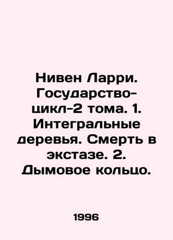 Niven Larry. Cycle State-2 Volumes. 1. Integral Trees. Death in Ecstasy. 2. Smoke Ring. In Russian /Niven Larri. Gosudarstvo-tsikl-2 toma. 1. Integralnye derevya. Smert v ekstaze. 2. Dymovoe koltso. S.-P. Northwest, Sphinx of St. Petersburg. 1996. 416 and 416p. Science Fiction-series. We have thousands of titles and often several copies of each title may be available. Please feel free to contact us for a detailed description of the copies available. SKUalb639e69a37f20ca54.