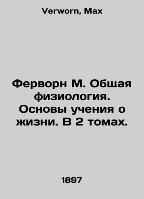 Vervorne M. General Physiology. Fundamentals of Life Teaching. In 2 Volumes. In Russian /Fervorn M. Obshchaya fiziologiya. Osnovy ucheniya o zhizni. V 2 tomakh. Translated with him. Prof. M. A. Menzbira M. Typography of T-va I. D. Sytin, 1897. 518 p. We have thousands of titles and often several copies of each title may be available. Please feel free to contact us for a detailed description of the copies available. SKUalb639ef3eaade9fb3b.