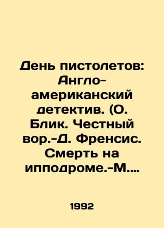 Gun Day: An Anglo-American Detective. (Fr. Blick. The Honest Gun. -D. Francis. Death on the racetrack. -M. Spillane. Gun Day). In Russian /Den pistoletov: Anglo-amerikanskiy detektiv. (O. Blik. Chestnyy vor.-D. Frensis. Smert na ippodrome.-M. Spilleyn. Den pistoletov). ( Super Crime Club Series). Translated from English. Compiled by S. Solodovnikov. Minsk, Belarusian-Australian agency. Digest, 1992. 432 p. We have thousands of titles and often several copies of each title may be available. Please feel free to contact us for a detailed description of the copies available. SKUalb63e335e985ddcd4e.