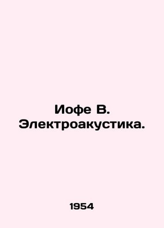 Jofe V. Electroacoustics. In Russian /Iofe V. Elektroakustika. Svyazizdat 1954. 184 p. We have thousands of titles and often several copies of each title may be available. Please feel free to contact us for a detailed description of the copies available. SKUalb64a155c5d9710156.