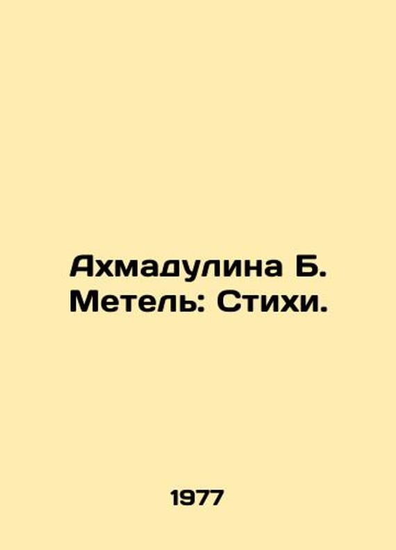 Ahmedulina B. Metel: Poems. In Russian /Akhmadulina B. Metel: Stikhi. M. Soviet writer of 1977. We have thousands of titles and often several copies of each title may be available. Please feel free to contact us for a detailed description of the copies available. SKUalb64c02e68d4753c1e.