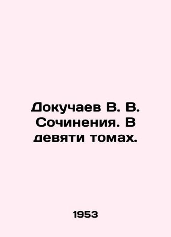 Dokuchaev V. V. Works. In nine volumes. In Russian /Dokuchaev V. V. Sochineniya. V devyati tomakh. Volume: 7 M.-L. Publishing House of the USSR Academy of Sciences 1953. We have thousands of titles and often several copies of each title may be available. Please feel free to contact us for a detailed description of the copies available. SKUalb64c2d1befc14c662.