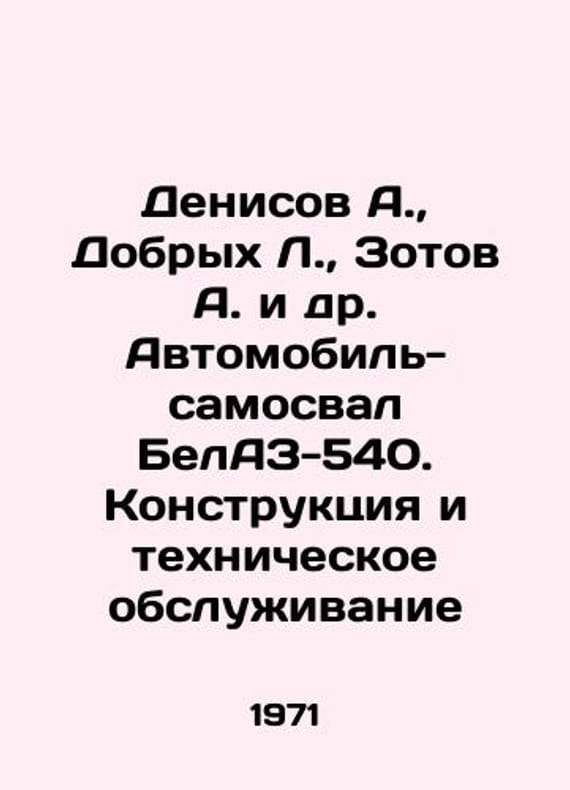 Denisov A., Dobrykh L., Zotov A. et al. Truck dump truck BelAZ-540. Design and maintenance In Russian /Denisov A., Dobrykh L., Zotov A. i dr. Avtomobil-samosval BelAZ-540. Konstruktsiya i tekhnicheskoe obsluzhivanie Machine Building 1971, 326 p. We have thousands of titles and often several copies of each title may be available. Please feel free to contact us for a detailed description of the copies available. SKUalb64cd5a8d5ef8a653.