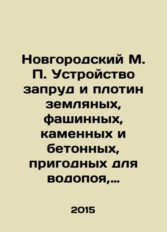 Novgorodsky M. P. Construction of dams and dams of earth, steel, stone, and concrete, suitable for watering, irrigation, and operation of mills, threshers, sawmills, etc. In Russian /Novgorodskiy M. P. Ustroystvo zaprud i plotin zemlyanykh, fashinnykh, kamennykh i betonnykh, prigodnykh dlya vodopoya, orosheniya i privedeniya v deystvie melnits, molotilok, lesopilok i pr. mekhanizmov. 5 copy Moscow Publishing House, V. Sekachev, 2015, 188p. We have thousands of titles and often several copies of each title may be available. Please feel free to contact us for a detailed description of the copies available. SKUalb6554e16ae4b3908f.