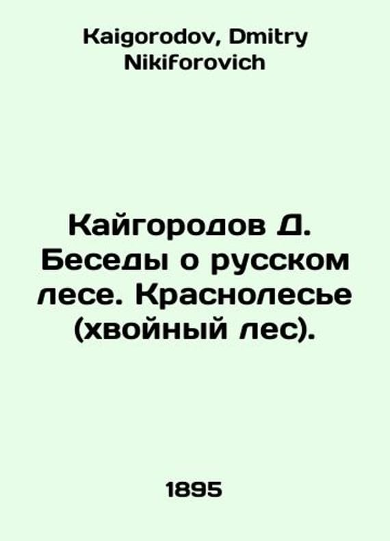 Kaigorod D. Discussions about the Russian forest. Krasnolesye (coniferous forest). In Russian /Kaygorodov D. Besedy o russkom lese. Krasnolese (khvoynyy les). Publishing House 4-e, correcting and supplementing S.Pb.Publishing House A. S. Suvorin. 1895. 12s. We have thousands of titles and often several copies of each title may be available. Please feel free to contact us for a detailed description of the copies available. SKUalb65697d5577b9ecd2.