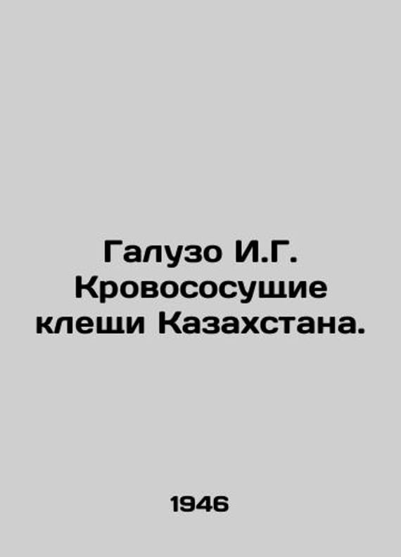Galuzo I.G. Blood-sucking Ticks of Kazakhstan. In Russian /Galuzo I.G. Krovososushchie kleshchi Kazakhstana.Volume 1. Introduction to the study of ticks, under general editorial and introductory article by E.N. Pavlovsky. Alma-Ata Academy of Sciences of the Kazakh SSR 1946.We have thousands of titles and often several copies of each title may be available. Please feel free to contact us for a detailed description of the copies available. SKUalb658eb215c0570f91.