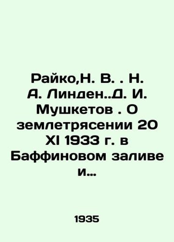 Raiko, N. V. N. A. Linden. D. I. Musketov. On the Earthquake of 20 XI 1933 in Baffin Bay and the Distribution of Seismic Hotspots in the Arctic On the Seismicity of the Arctic. In Russian /Rayko,N. V. N. A. Linden.D. I. Mushketov. O zemletryasenii 20 XI 1933 g. vBaffinovomzalivei raspredelenii seysmicheskikh ochagov v Arktike O seysmichnosti Arktiki. D. I. Musketov: N. V. Raiko, N. A. Linden (Proceedings of the Seismological Institute of the USSR Academy of Sciences: # 61). Moscow. Publishing House of the USSR Academy of Sciences, 1935. We have thousands of titles and often several copies of each title may be available. Please feel free to contact us for a detailed description of the copies available. SKUalb65ab8fe25632018b.