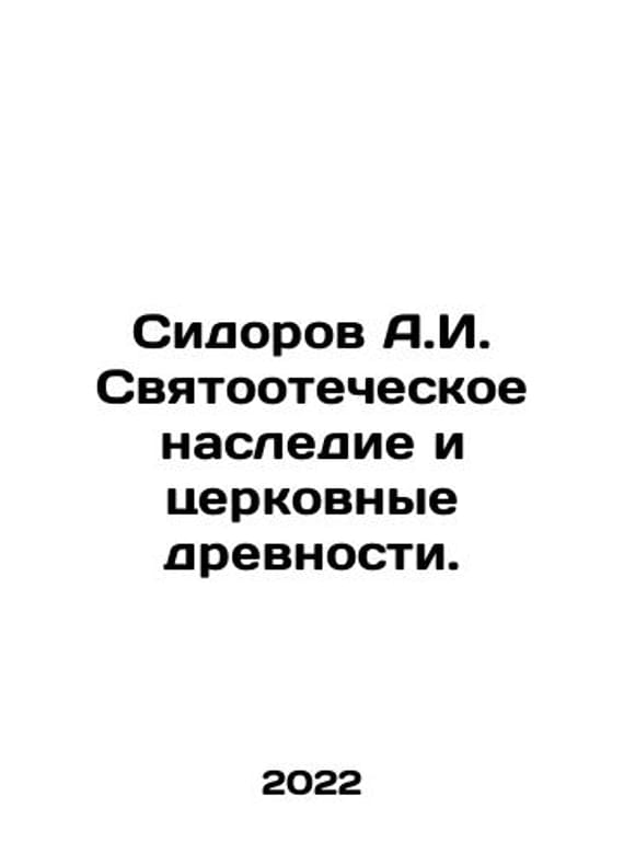 Sidorov A.I. Patriotic Heritage and Church Antiquities. Volume 6. In Russian /Sidorov A.I. Svyatootecheskoe nasledie i tserkovnye drevnosti. Tom 6. Essays on Byzantine Patronology. M. Siberian Spine. 2022. 505 p.We have thousands of titles and often several copies of each title may be available. Please feel free to contact us for a detailed description of the copies available.SKUalb0aca0ff84822040d.
