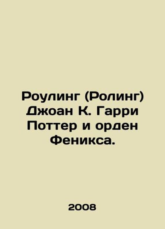 JK Rowling and the Order of the Phoenix. In Russian /Rouling (Roling) Dzhoan K. Garri Potter i orden Feniksa. In Hebrew Tel Aviv. 2008. We have thousands of titles and often several copies of each title may be available. Please feel free to contact us for a detailed description of the copies available. SKUalb6608e87a2dc25187.
