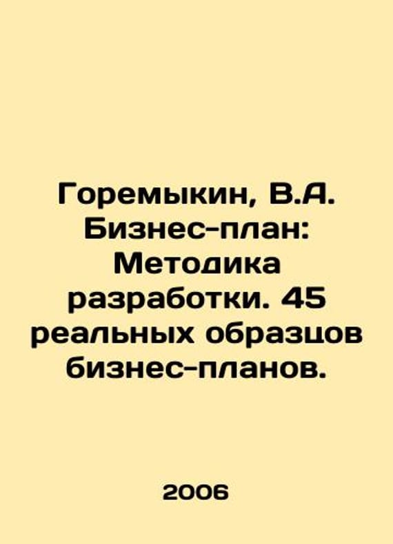 Goremykin, V.A. Business Plan: Development Methodology. 45 Real Business Plan Samples. In Russian /Goremykin, V.A. Biznes-plan: Metodika razrabotki. 45 realnykh obraztsov biznes-planov. 4th edition, revised and supplemented by Moscow Axis-89 in 2006.We have thousands of titles and often several copies of each title may be available. Please feel free to contact us for a detailed description of the copies available. SKUalb6658e46c4251f369.