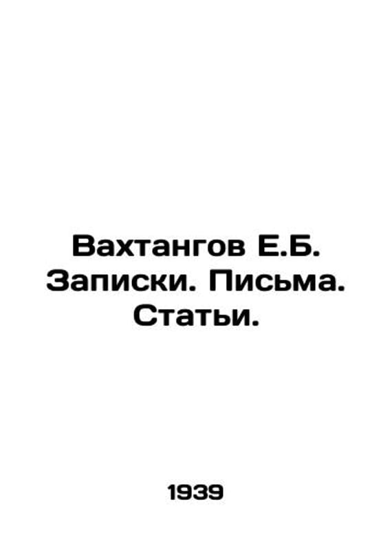 Vakhtangov E.B. Notes. Letters. Articles. In Russian /Vakhtangov E.B. Zapiski. Pisma. Stati. And commentary by N. M. Vakhtangova, L. D. Vendrovskaya, B. E. Zakhava. We have thousands of titles and often several copies of each title may be available. Please feel free to contact us for a detailed description of the copies available. SKUalb665e28f56b7c4c47.