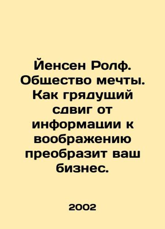 Jensen Rolf: A Dream Society. How the coming shift from information to imagination will transform your business. In Russian /Yensen Rolf. Obshchestvo mechty. Kak gryadushchiy sdvig ot informatsii k voobrazheniyu preobrazit vash biznes. St. Petersburg School of Economics in St. Petersburg. 2002.We have thousands of titles and often several copies of each title may be available. Please feel free to contact us for a detailed description of the copies available. SKUalb66b499dea4e93744.