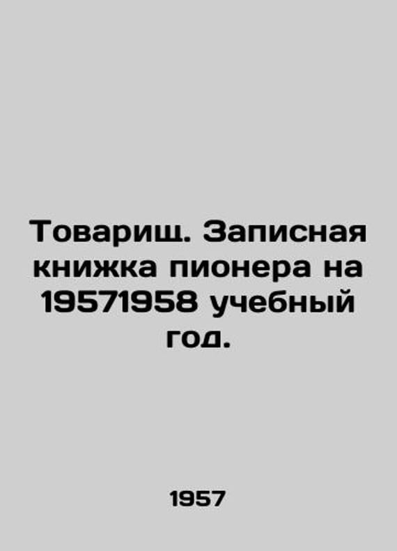 Comrade. Pioneers notebook for the academic year 19571958. In Russian /Tovarishch. Zapisnaya knizhka pionera na 19571958 uchebnyy god. M. Young Guard. 1957. We have thousands of titles and often several copies of each title may be available. Please feel free to contact us for a detailed description of the copies available. SKUalb66d058156ea83f38.