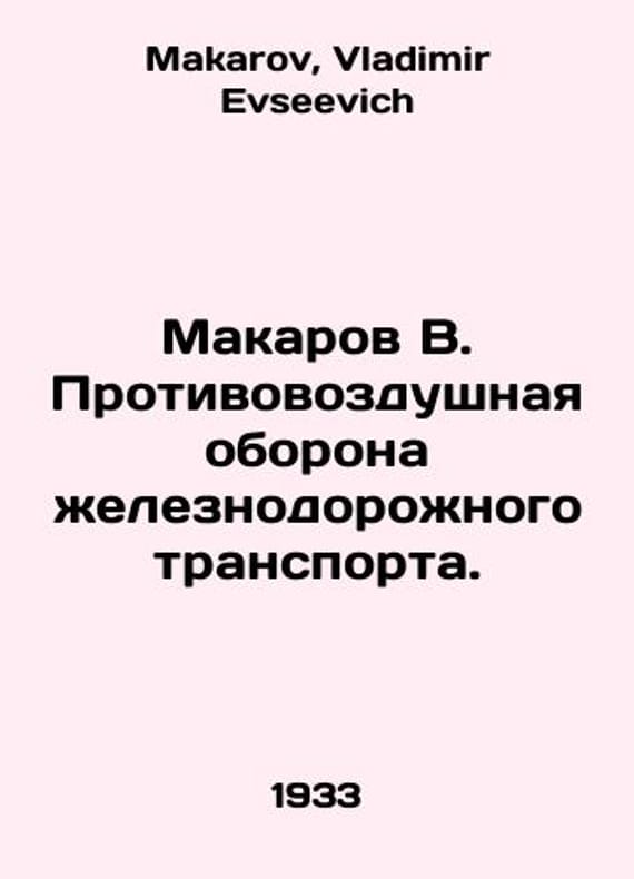 Makarov V. Air Defense of Railway Transport. In Russian /Makarov V. Protivovozdushnaya oborona zheleznodorozhnogo transporta. L. KUSTNAS PVO 1933. 304s. We have thousands of titles and often several copies of each title may be available. Please feel free to contact us for a detailed description of the copies available. SKUalb6706893258890479.