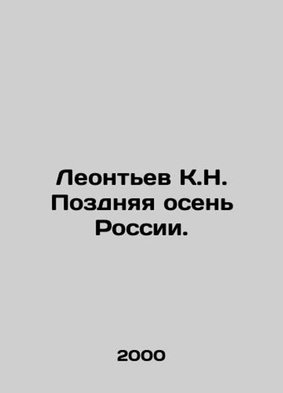 Leontev K.N. Late Autumn of Russia. In Russian /Leontev K.N. Pozdnyaya osen Rossii. Entry of D.M. Volodikhina, M. Agraph, 2000, 336 p. We have thousands of titles and often several copies of each title may be available. Please feel free to contact us for a detailed description of the copies available. SKUalb6756b1bb35b71262.