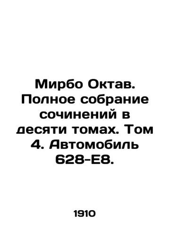 Mirbo Octav. Complete collection of essays in ten volumes. Volume 4. Car 628-E8. In Russian /Mirbo Oktav. Polnoe sobranie sochineniy v desyati tomakh. Tom 4. Avtomobil 628-E8. Second Edition. Translation by L. Halberstadt and A. Smirnov. Moscow 1910. We have thousands of titles and often several copies of each title may be available. Please feel free to contact us for a detailed description of the copies available. SKUalb677b587a8885b50d.