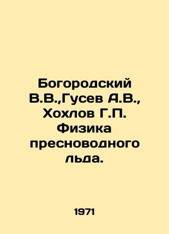 Bogorodsky V.V., Gusev A.V., Khokhlov G.P. Freshwater Ice Physics. In Russian /Bogorodskiy V.V., Gusev A.V., Khokhlov G.P. Fizika presnovodnogo lda. Under the editorship of the Corresponding Member of the Academy of Sciences of the USSR, V.V.Bogorodsky. L Hydrometeo-edition 1971, 228s. We have thousands of titles and often several copies of each title may be available. Please feel free to contact us for a detailed description of the copies available. SKUalb67fa3a8f2b3b19e7.
