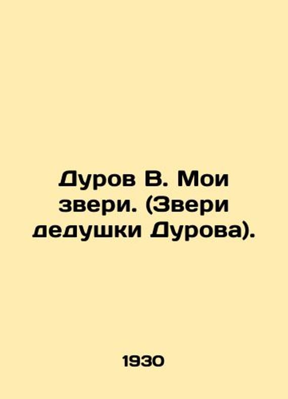 Durov V. My Beasts. In Russian /Durov V. Moi zveri. (Zveri dedushki Durova). Illustrations by V. Milashevsky. Foreword by Al. Altaev. Moscow Publishing House Young Guard 1930. We have thousands of titles and often several copies of each title may be available. Please feel free to contact us for a detailed description of the copies available. SKUalb68044797a7ba0de1.