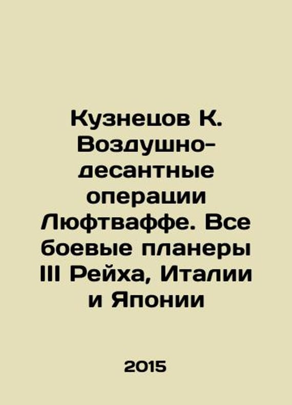 Kuznetsov K. Airborne operations by the Luftwaffe. All combat gliders of the Third Reich, Italy and Japan In Russian /Kuznetsov K. Vozdushno-desantnye operatsii Lyuftvaffe. Vse boevye planery III Reykha, Italii i Yaponii War series and us. M. Eksmos aviation collection 2015. We have thousands of titles and often several copies of each title may be available. Please feel free to contact us for a detailed description of the copies available. SKUalb681bdbe7265f62bb.