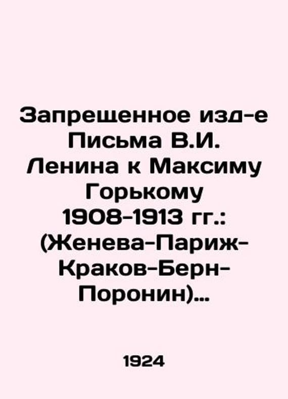 Prohibited Letters from V.I. Lenin to Maxim Gorky, 1908-1913: (Geneva-Paris-Krakow-Bern-Poronin) In-N V.I. Lenin under the Central Committee of the Russian Communist Party (b). In Russian /Zapreshchennoe izd-e Pisma V.I. Lenina k Maksimu Gorkomu 1908-1913 gg.: (Zheneva-Parizh-Krakov-Bern-Poronin) In-t V. I. Lenina pri TsK RKP(b). Leningrad State Publishing House, 1924. 78 p. We have thousands of titles and often several copies of each title may be available. Please feel free to contact us for a detailed description of the copies available. SKUalb68231c05eb4befa9.