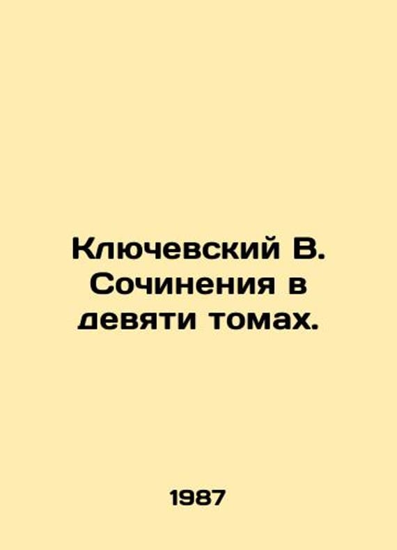 Klyuchevsky V. Essays in nine volumes. In Russian /Klyuchevskiy V. Sochineniya v devyati tomakh. M Thought 1987-1990. We have thousands of titles and often several copies of each title may be available. Please feel free to contact us for a detailed description of the copies available. SKUalb683282a712f26170.