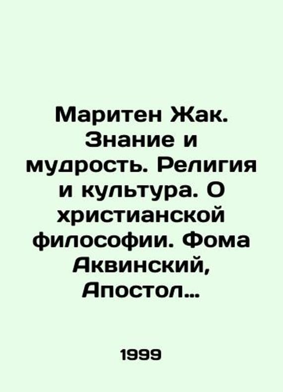 Marine Jacques. Knowledge and Wisdom. Religion and Culture. On Christian Philosophy. Thomas Aquinas, Apostle of Modernity. In Russian /Mariten Zhak. Znanie i mudrost. Religiya i kultura. O khristianskoy filosofii. Foma Akvinskiy, Apostol sovremennosti. M. Naukhnyi mir. 1999..You are welcome to reach out to us for a detailed description of the copies currently available. Delivery of this book may take longer than usual including extended processing and pre-shipping time, no expedited shipping is available. Please advise us if you have a set date or a deadline to receive your order. SKUalb11c5a700a6537d94