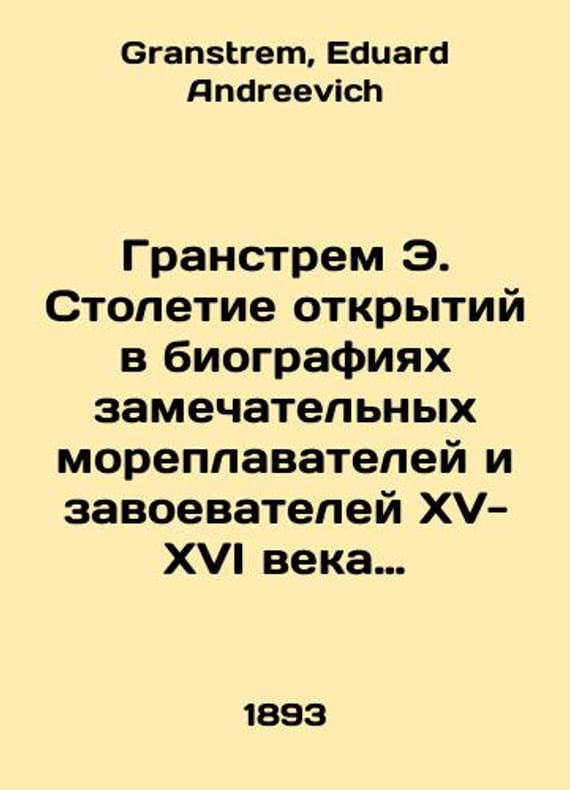 Granstrem E. A century of discoveries in the biographies of remarkable navigators and conquerors of the fifteenth and sixteenth centuries (Antique Book 1893) In Russian /Granstrem E. Stoletie otkrytiy v biografiyakh zamechatelnykh moreplavateley i zavoevateley XV-XVI veka (Antikvarnaya kniga 1893g.) St. Petersburg Typography by M.M. Stasyulevich, 1893. 316s. We have thousands of titles and often several copies of each title may be available. Please feel free to contact us for a detailed description of the copies available. SKUalb683a41ec5f975a89.