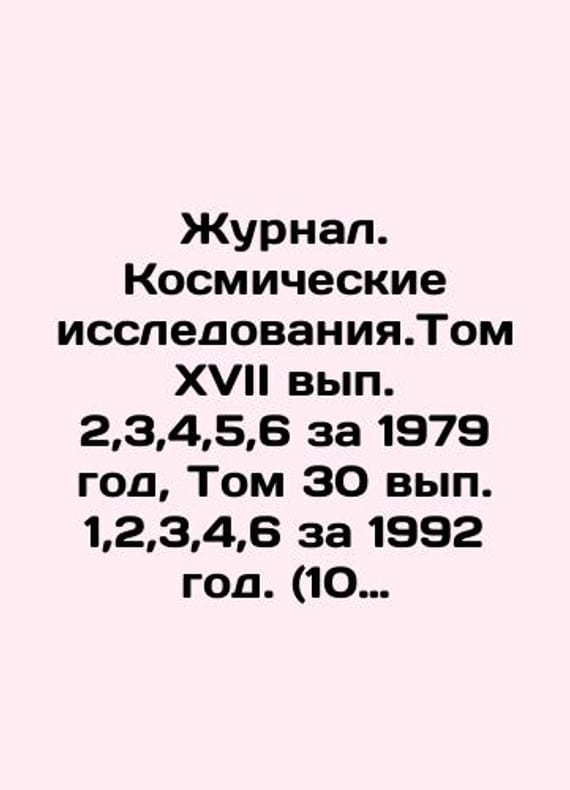 Journal. Space Exploration. Volume XVII, 2,3,4,5,6 for 1979, Volume 30, 1,2,3,4,6 for 1992. (10 issues) In Russian /Zhurnal. Kosmicheskie issledovaniya.Tom XVII vyp. 2,3,4,5,6 za 1979 god, Tom 30 vyp. 1,2,3,4,6 za 1992 god. (10 vypuskov) Journal. Space Exploration. Volume XVII, 2,3,4,5,6 for 1979, Volume 30, 1,2,3,4,6 for 1992. (10 issues). We have thousands of titles and often several copies of each title may be available. Please feel free to contact us for a detailed description of the copies available. SKUalb6852876e70ff8f69.