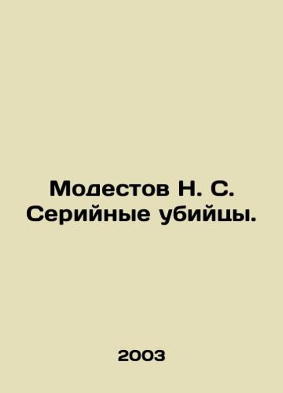 Modestow N. S. Serial Killers. In Russian /Modestov N. S. Seriynye ubiytsy. Burned by Area M: ACT 2003.We have thousands of titles and often several copies of each title may be available. Please feel free to contact us for a detailed description of the copies available. SKUalb687194463a1a080e.