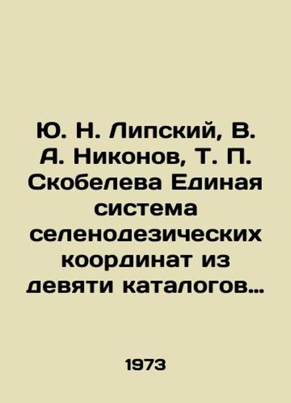 Yu. N. Lipsky, V. A. Nikonov, T. Skobeleva Unified system of selenodetic coordinates from nine catalogues on the visible hemisphere of the Moon. In Russian /Yu.N.Lipskiy, V. A. Nikonov, T. Skobeleva Edinaya sistema selenodezicheskikh koordinat iz devyati katalogov na vidimom polusharii Luny. Academy of Sciences of the USSR. Moscow State University named after M. V. Lomonosov. State Astronomical Institute named after K. Sternberg. Moscow Science 1973. We have thousands of titles and often several copies of each title may be available. Please feel free to contact us for a detailed description of the copies available. SKUalb688757bf9c7b9c54.