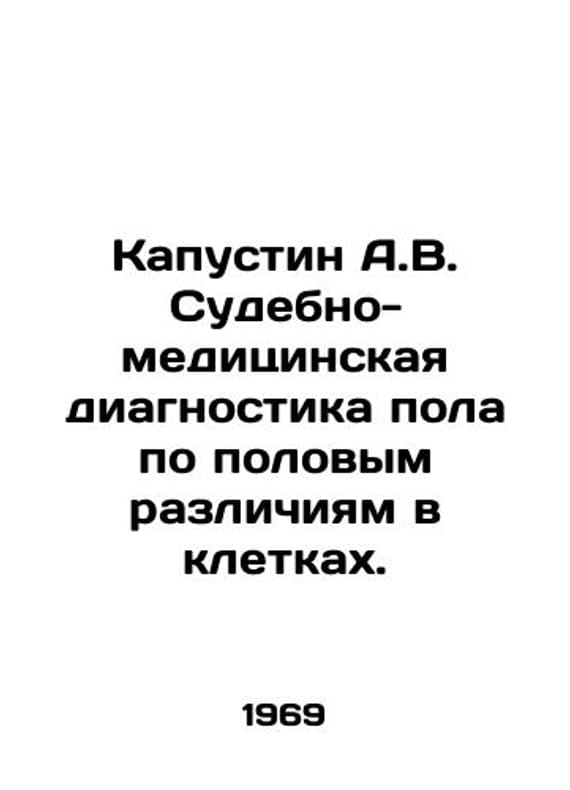 Kapustin A.V. Forensics diagnosis of sex by sex differences in cells. In Russian /Kapustin A.V. Sudebno-meditsinskaya diagnostika pola po polovym razlichiyam v kletkakh. M. Medicine. 1969. 160 p. We have thousands of titles and often several copies of each title may be available. Please feel free to contact us for a detailed description of the copies available. SKUalb68c0118df249cae8.