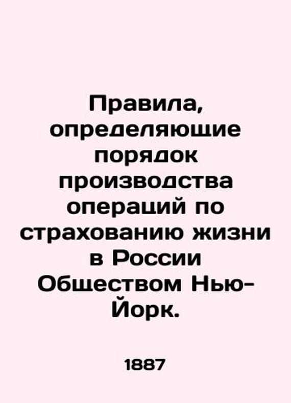 Rules governing the conduct of life insurance operations in Russia by the New York Company. In Russian (ask us if in doubt)/Pravila opredelyayushchie poryadok proizvodstva operatsiy po strakhovaniyu zhizni v Rossii Obshchestvom Nyu-York. S.Pb.1887g. 43chu. We have thousands of titles and often several copies of each title may be available. Please feel free to contact us for a detailed description of the copies available. SKUalb68e76f5438a3b588