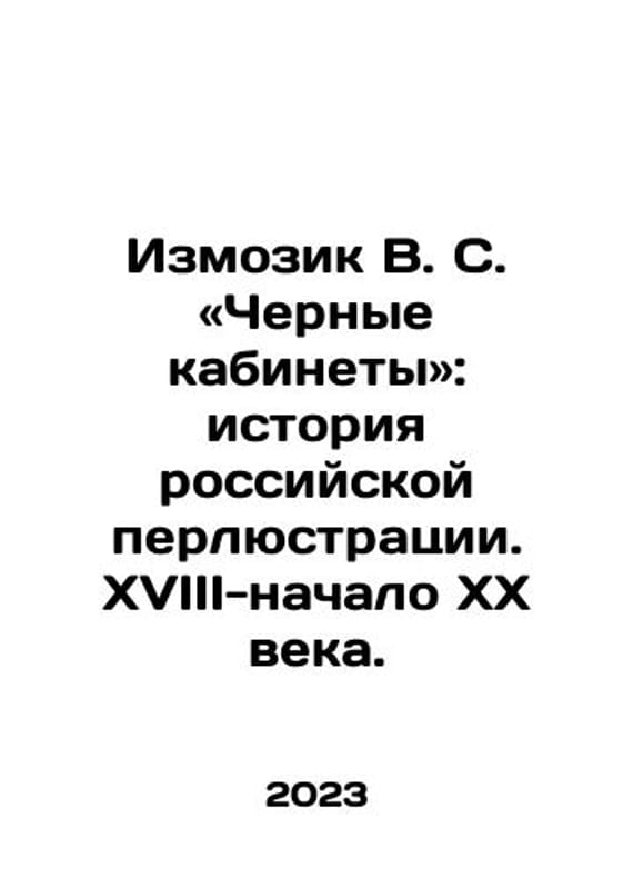 Izmozik V. S. Black Cabinets: The History of Russian Perlustration. 18th-early 20th Century. In Russian /Izmozik V. S. «Chernye kabinety»: istoriya rossiyskoy perlyustratsii. XVIII-nachalo XX veka. M. New Literary Review 2023. 696 p. We have thousands of titles and often several copies of each title may be available. Please feel free to contact us for a detailed description of the copies available. SKUalb699d05bb1d08648f.