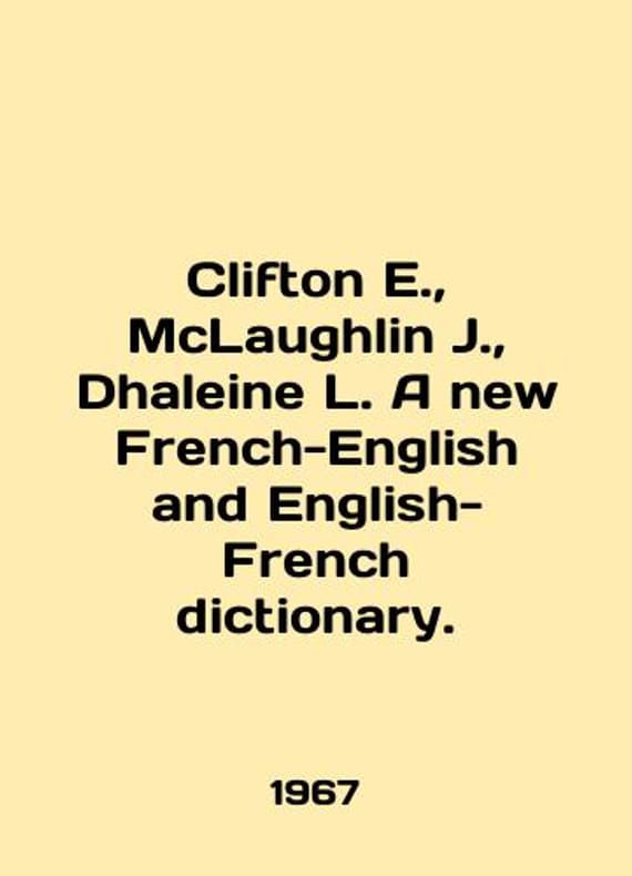 Clifton E., McLaughlin J., Dhaleine L. A new French-English and English-French dictionary. In English /Clifton E., McLaughlin J., Dhaleine L. A new French-English and English-French dictionary. Paris. Garnier. 1967. 1220c. We have thousands of titles and often several copies of each title may be available. Please feel free to contact us for a detailed description of the copies available. SKUalb699d9d78898e14dc.