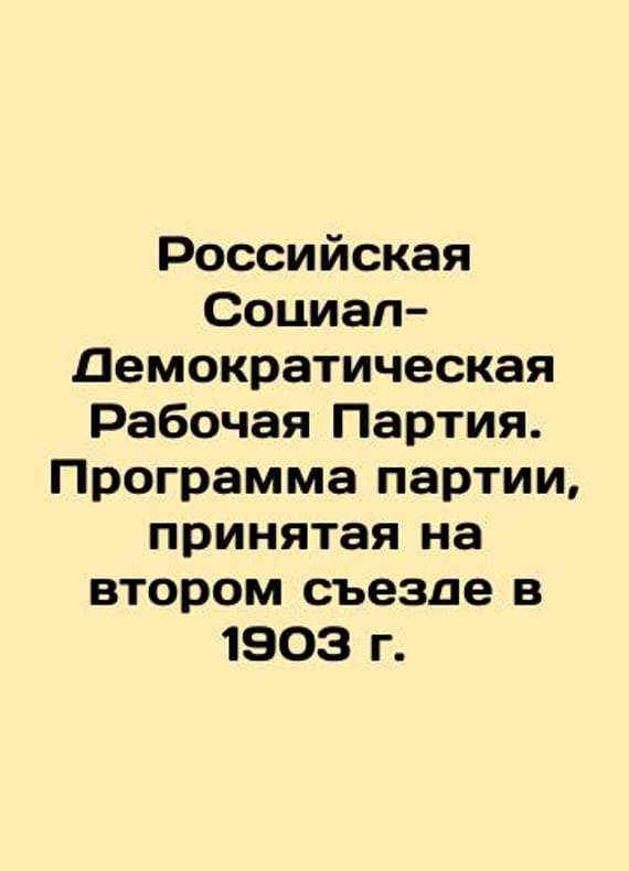 Russian Social Democratic Workers Party. Party Program adopted at the Second Congress in 1903 In Russian (ask us if in doubt)/Rossiyskaya Sotsial-Demokraticheskaya Rabochaya Partiya. Programma partii prinyataya na vtorom sezde v 1903 g. Edition # 19 of the Rybinsk Group of the RSDRP Typography of the Rybinsk Group August 05 8 p. We have thousands of titles and often several copies of each title may be available. Please feel free to contact us for a detailed description of the copies available. SKUalb69b8dd26f4a9e549