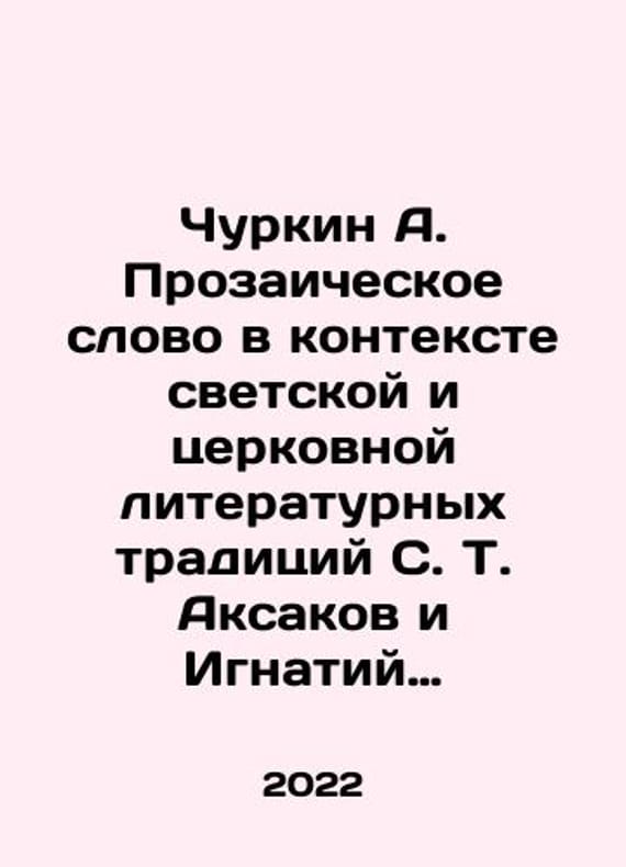 Churkin A. Prosaic word in the context of secular and ecclesiastical literary traditions of S. T. Aksakov and Ignatiy (Bryanchaninov) In Russian /Churkin A. Prozaicheskoe slovo v kontekste svetskoy i tserkovnoy literaturnykh traditsiy S. T. Aksakov i Ignatiy (Bryanchaninov) SPb Rostock 2022 400 s. We have thousands of titles and often several copies of each title may be available. Please feel free to contact us for a detailed description of the copies available. SKUalb69c37bfc11068a74.