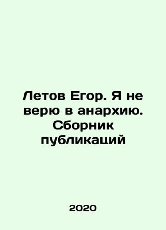 Yegor Letov. I dont believe in anarchy In Russian /Letov Egor. Ya ne veryu v anarkhiyu. Sbornik publikatsiyM. Vyrgorod 2020.We have thousands of titles and often several copies of each title may be available. Please feel free to contact us for a detailed description of the copies available. SKUalb69d1fe1dc3439b12.