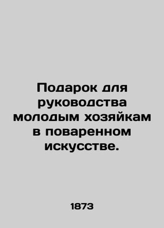 A gift to guide young housewives in the art of cooking. In Russian /Podarok dlya rukovodstva molodym khozyaykam v povarennom iskusstve. The newest cookbook. With a picture in the text. Compiled by Naidenov. In three parts. M. Theatre printing house. 1873. XIV, 308, 84, 272 p., 24,0x16.5 sm. We have thousands of titles and often several copies of each title may be available. Please feel free to contact us for a detailed description of the copies available. SKUalb69d31b2ecaf0c00d.