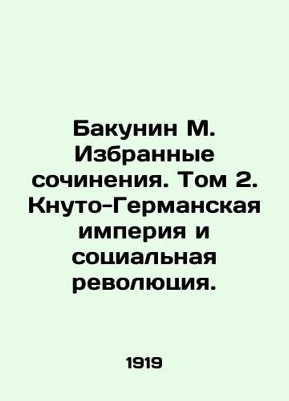 Bakunin M. Selected Works. Volume 2. The Knuto-German Empire and the Social Revolution. In Russian /Bakunin M. Izbrannye sochineniya. Tom 2. Knuto-Germanskaya imperiya i sotsialnaya revolyutsiya. The Voice of Labor 1919, by J. Guillaume St. Petersburg-Moscow. We have thousands of titles and often several copies of each title may be available. Please feel free to contact us for a detailed description of the copies available. SKUalb69ee1f3e6b95b4a0.