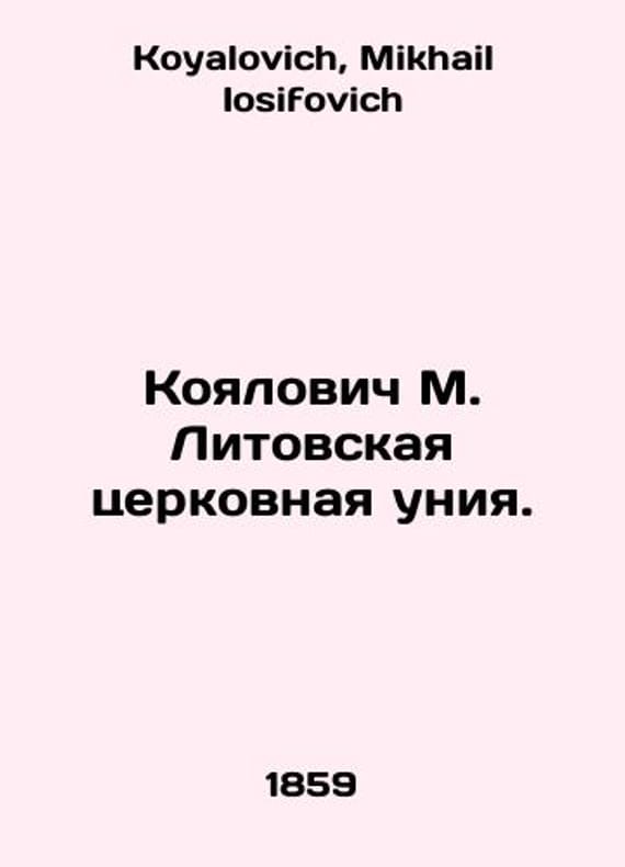 Koyalovich M. Lithuanian Church Union. In Russian /Koyalovich M. Litovskaya tserkovnaya uniya. Research by Koyalovich M. Volume 1. St. Petersburg Tip. Tikhmenev 1859. 316s. We have thousands of titles and often several copies of each title may be available. Please feel free to contact us for a detailed description of the copies available. SKUalb6a1b0a26136599f9.