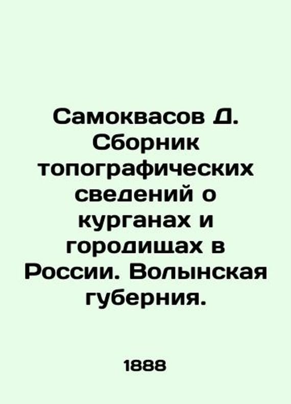 Samokvasov D. Collection of topographical information about mounds and mounds in Russia. Volyn province. In Russian (ask us if in doubt)/Samokvasov D. Sbornik topograficheskikh svedeniy o kurganakh i gorodishchakh v Rossii. Volynskaya guberniya.. Short description: In Russian (ask us if in doubt).C.P.B. 1888 (4) 99 p. We have thousands of titles and often several copies of each title may be available. Please feel free to contact us for a detailed description of the copies available. SKUalb6a1ea42c0b3c4013