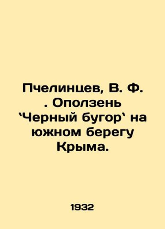Bechelintsev, V.F. A landslide on the southern shore of Crimea. In Russian /Pchelintsev, V. F. Opolzen Chernyy bugor na yuzhnom beregu Kryma. With 1 map and 7 tables. V. F. Pchelintsev, I. K. Semenov. Moscow: L. Geol. publishing house, (L.: type named after Evg. Sokolova). 1932. 48 p. We have thousands of titles and often several copies of each title may be available. Please feel free to contact us for a detailed description of the copies available. SKUalb6a1f053b24e0ad22.