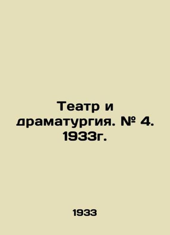 Theatre and Drama. # 4. 1933. In Russian /Teatr i dramaturgiya. # 4. 1933g. Journal. M. Iskra of the Revolution. 1933. 64 p. We have thousands of titles and often several copies of each title may be available. Please feel free to contact us for a detailed description of the copies available. SKUalb6a39b952f9eda014.