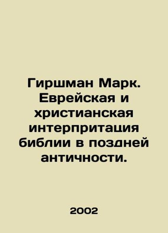 Hirschman Mark. Jewish and Christian Interpretation of the Bible in Late Antiquity. In Russian /Girshman Mark. Evreyskaya i khristianskaya interpritatsiya biblii v pozdney antichnosti. Library of Judaism Moscow. Jerusalem Bridges of Culture.Gesharim 2002. We have thousands of titles and often several copies of each title may be available. Please feel free to contact us for a detailed description of the copies available. SKUalb6a4a7f7fb5901461.