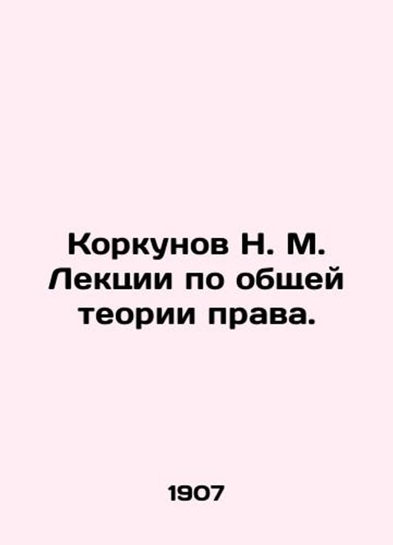 Korkunov N. M. Lectures on general theory of law. In Russian (ask us if in doubt)/Korkunov N. M. Lektsii po obshchey teorii prava.Seventh Edition. St. Petersburg. Edition of the Law Bookstore by N. K. Martynov 1907. 354 xp. Professor specialist In state and In ternational law. Taught at St. Petersburg University Military Law Academy and other educational In stitutions. The late 1880 s and early 1990 s - the most fruitful period In the work of N. M. Korkunov. Together with A.F. Kony and other promIn ent lawyers he collaborates In the monthly journal Legal Chronicle which was published In St. Petersburg In 1890-1892. N. M. Korkunov is a member of the Council of the University Law Society is a member of the Union of Mutual Assistance of Russian Writers. SKUalb6a51a9159ed07876.
