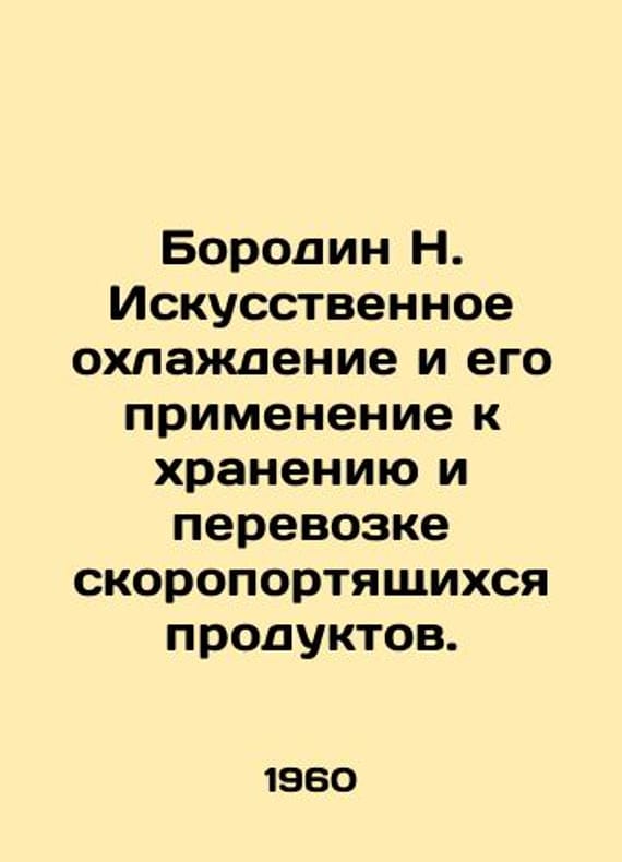 Borodin N. Artificial refrigeration and its application to the storage and transport of perishable foodstuffs. In Russian (ask us if in doubt)/Borodin N. Iskusstvennoe okhlazhdenie i ego primenenie k khraneniyu i perevozke skoroportyashchikhsya produktov. Short description: In Russian (ask us if in doubt).The publication was written by a prominent public figure of early twentieth-century Russia who showed himself in politics and business - Nikolai Andreevich Borodin (1861-1937) by profession ichthyologist specialist in fisheries and fish farming also by profession as a journalist and publicist. Borodin was a member of the State Duma a member of the cadet party served in the Agriculture Department and taught. Borodin was one of the pioneers of refrigeration in Russia. We have thousands of titles and often several copies of each title may be available. Please feel free to contact us for a detailed description of the copies available. SKUalb6a6082e3745916a3