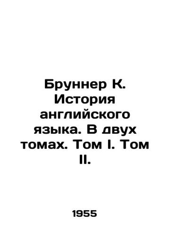 Brunner K. History of the English Language. In two volumes. Volume I. Volume II. In Russian /Brunner K. Istoriya angliyskogo yazyka. V dvukh tomakh. Tom I. Tom II. Moscow: Foreign Literature 1955. We have thousands of titles and often several copies of each title may be available. Please feel free to contact us for a detailed description of the copies available. SKUalb6a89c2149ea0d459.