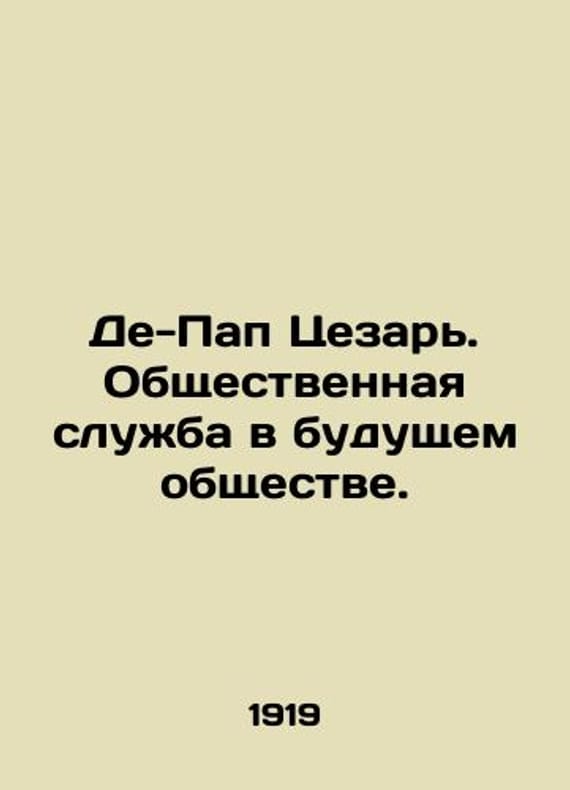 De Pope Caesar. Public service in a future society. In Russian /De-Pap Tsezar. Obshchestvennaya sluzhba v budushchem obshchestve. Note submitted to the Brussels Congress of the International Workers Association in 1874. Petrograd. Publishing House Kolos. 1919. We have thousands of titles and often several copies of each title may be available. Please feel free to contact us for a detailed description of the copies available. SKUalb6aa89810b45460b6.