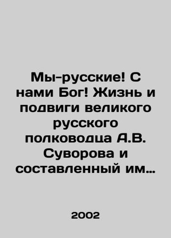We Russians God is with us The life and exploits of the great Russian commander A.V. Suvorov and the Penitentiary Canon that he drew up In Russian /My-russkie S nami Bog Zhizn i podvigi velikogo russkogo polkovodtsa A.V. Suvorova i sostavlennyy im Pokayannyy kanon We are Russians God is with us The life and exploits of the great Russian commander A.V. Suvorov and the Penitentiary Canon 2002 that he composed. Moscow. We have thousands of titles and often several copies of each title may be available. Please feel free to contact us for a detailed description of the copies available. SKUalb6ae8663b3754927b.